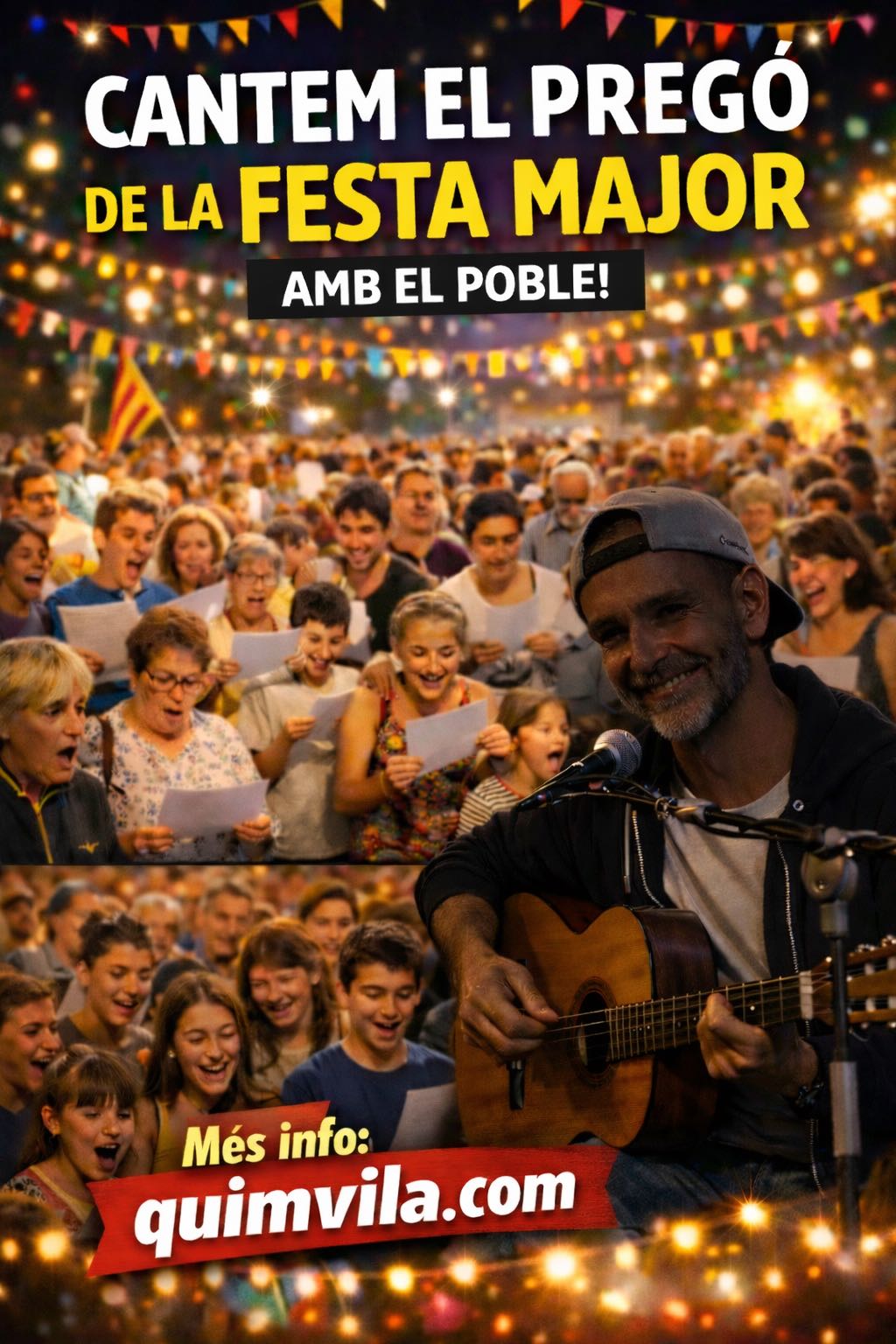 Amb lletra impresa per tots els assistents la cançó-pregó s'explica, s'assaja i es CANTA EN DIRECTE des d'on més convingui (balcó ajuntament, plaça, sala, etc).